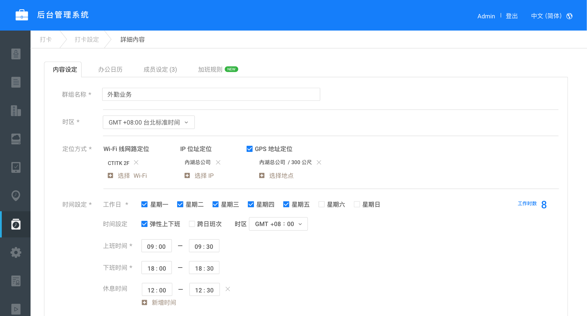 弹性设定考勤规则,相同人员设置同群组,便利资料统计与管理。