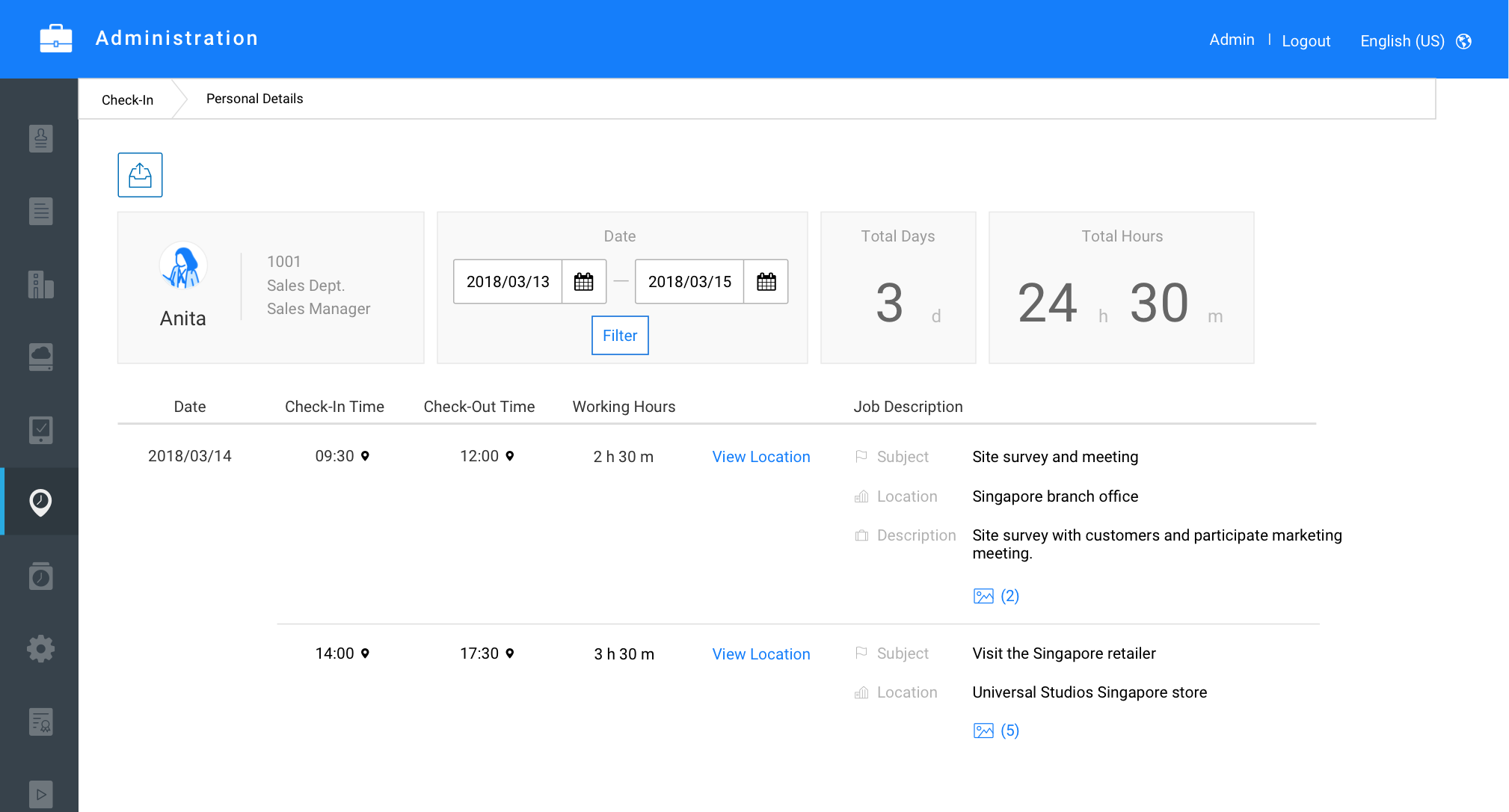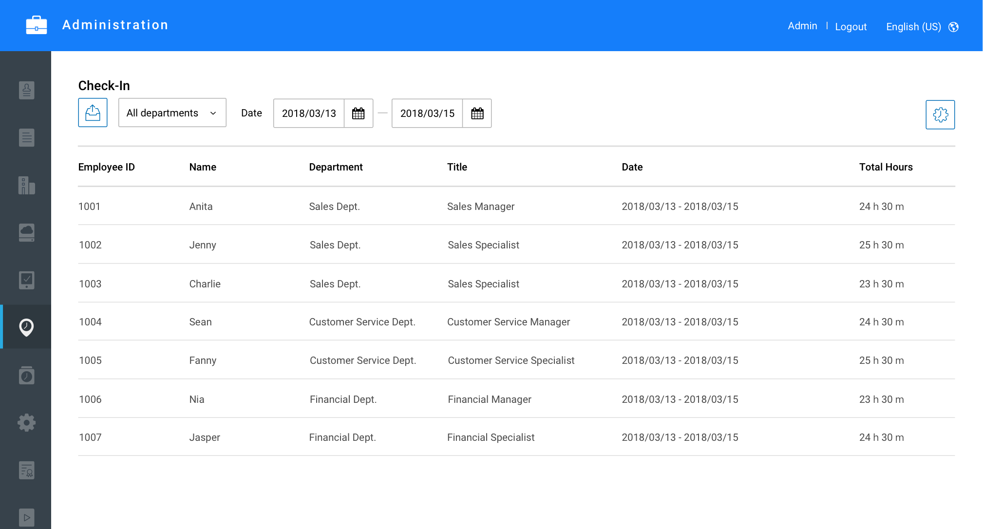 Managers can query users’ check-in records for a specific department and time period, and export the report to provide HR with the necessary data for attendance calculations.